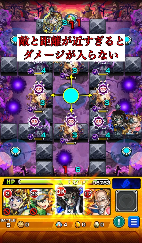 特に注意してほしいのが、最初からボムを踏んでいても、敵との距離が近すぎると、ダメージが間に合わないケースがあります。