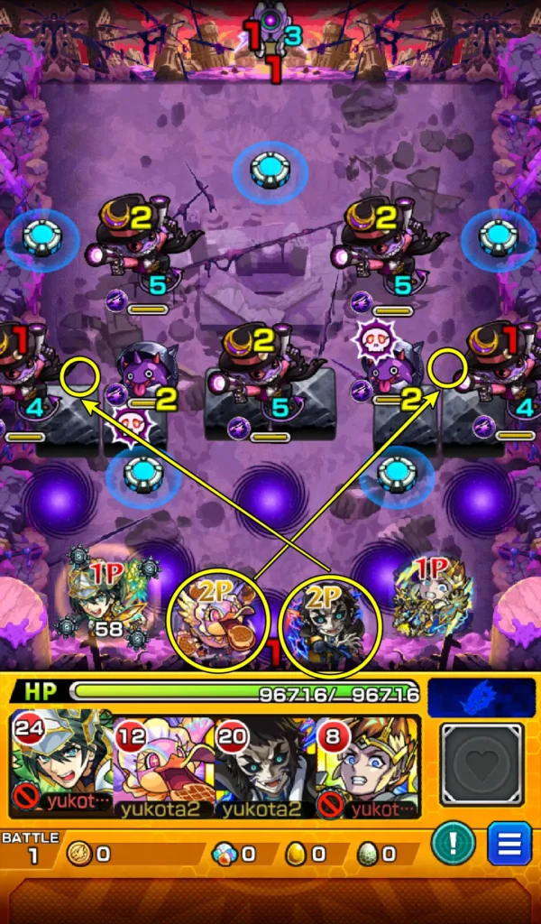 まず、画面下の雑魚から優先して倒していきましょう。