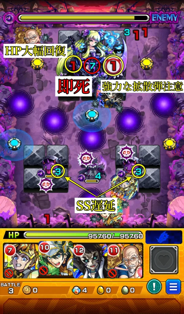 ※毎ターン一瞬でHPを回復してくるため、一撃で倒さないといけないからです。