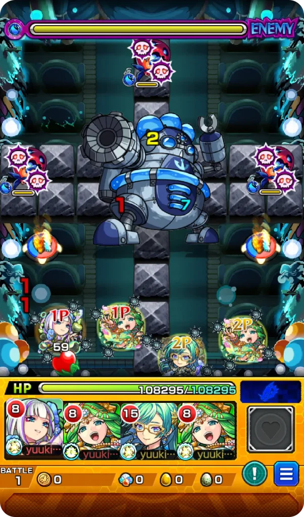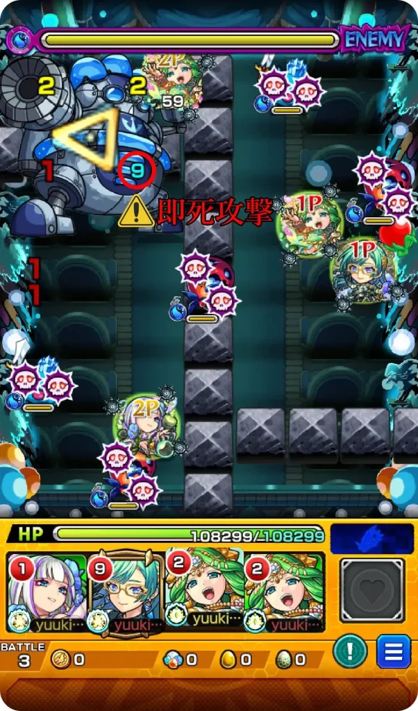 ボスステージ1では、ロボットが6ターンで即死攻撃をしてくるため、優先的に片づけましょう。