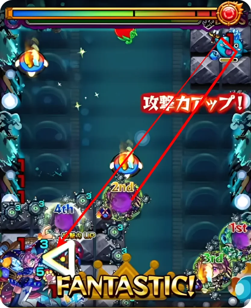 右上の位置にいる「剣リン」は触れると、攻撃力アップが発動します。