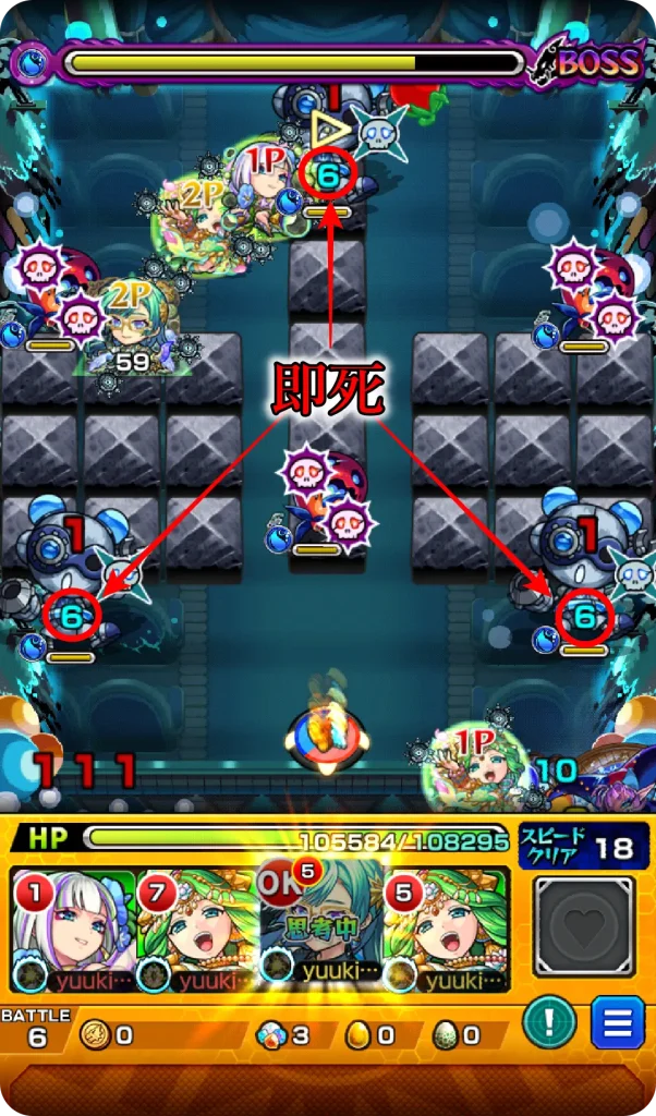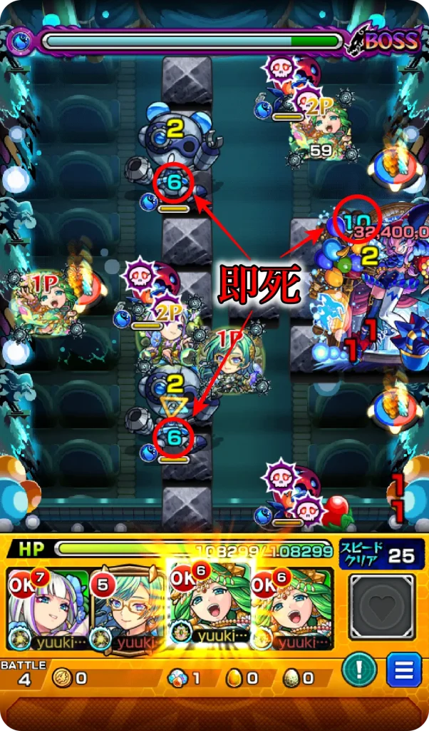 ボスは「5ターン」で即死攻撃が早いので、なるべく時間をかけすぎないようにしよう。