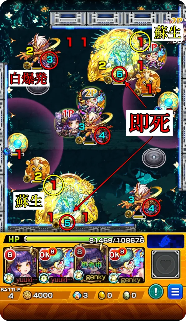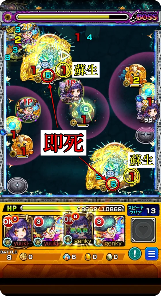 🔹第4ステージの立ち回り方:ヴィシュヌは相互蘇生するので同時に倒そう