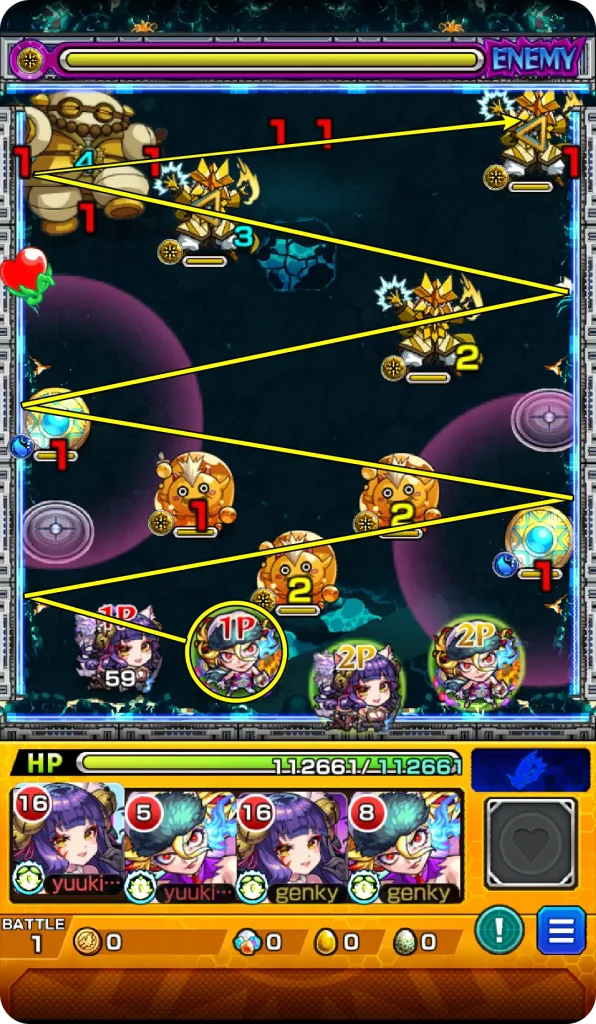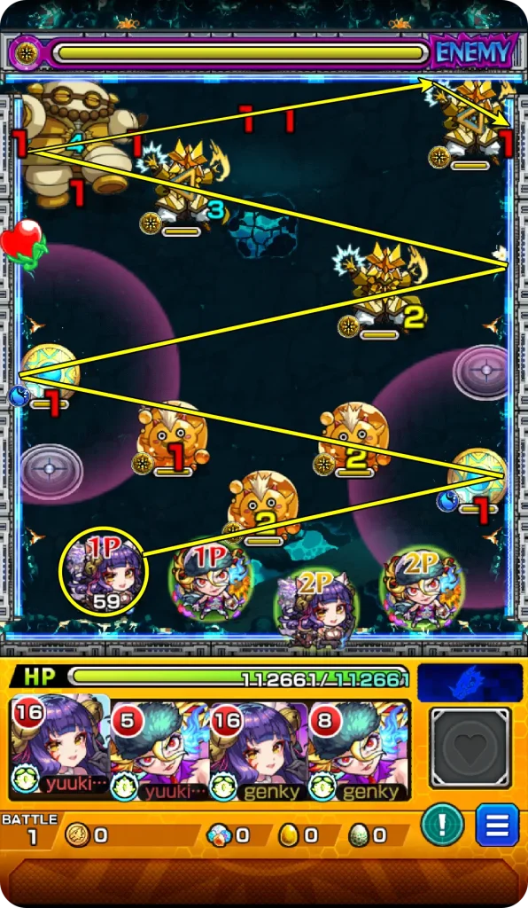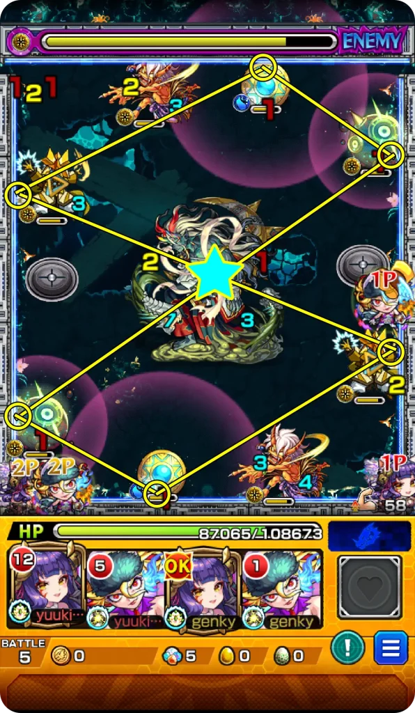 焦らずルートを意識して、“ひし型”の攻撃パターンを心がけることで、確実にダメージを稼ぎましょう。