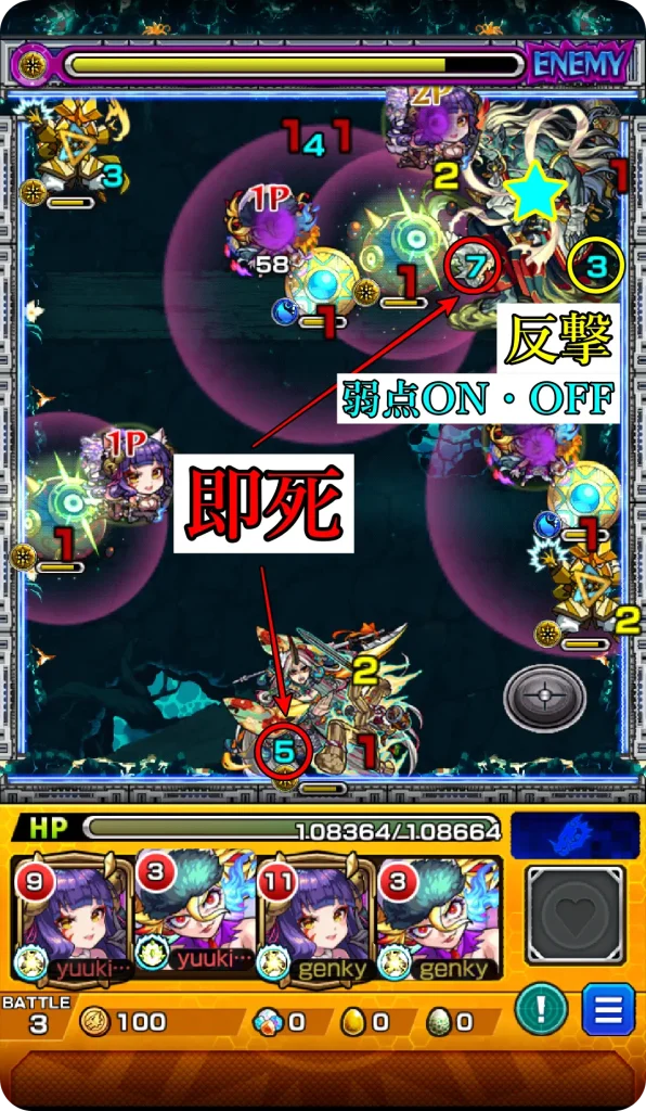 刹那自身も反撃(弱点ON・OFF)を利用してくるため、見落とさないようにしてくださいね。