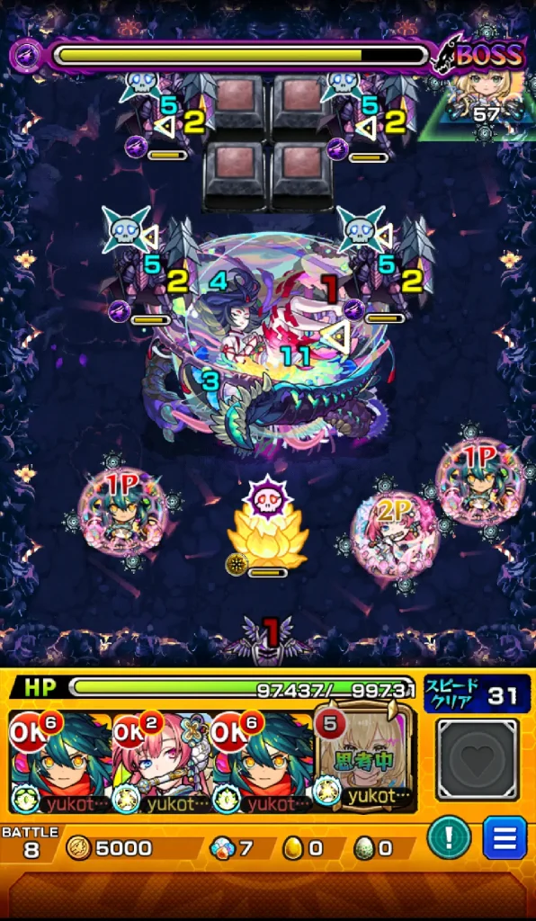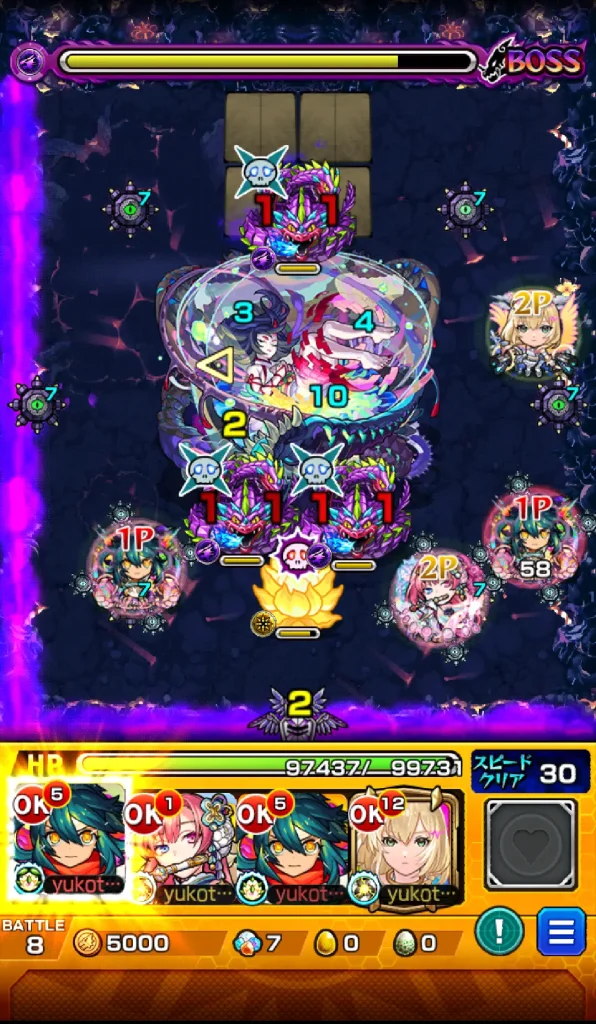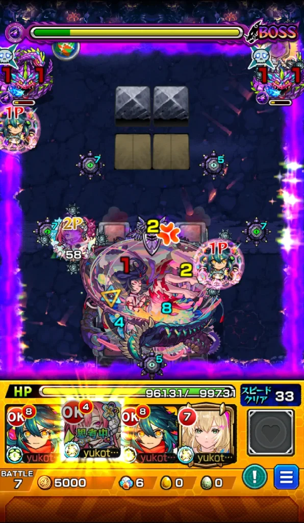 🔹第7ステージの立ち回り方:奈落の攻撃が痛いので、HPを回復しながら、攻撃するといい