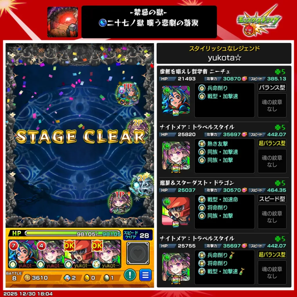 僕が禁忌の獄27【表】を攻略した編成はこれ!