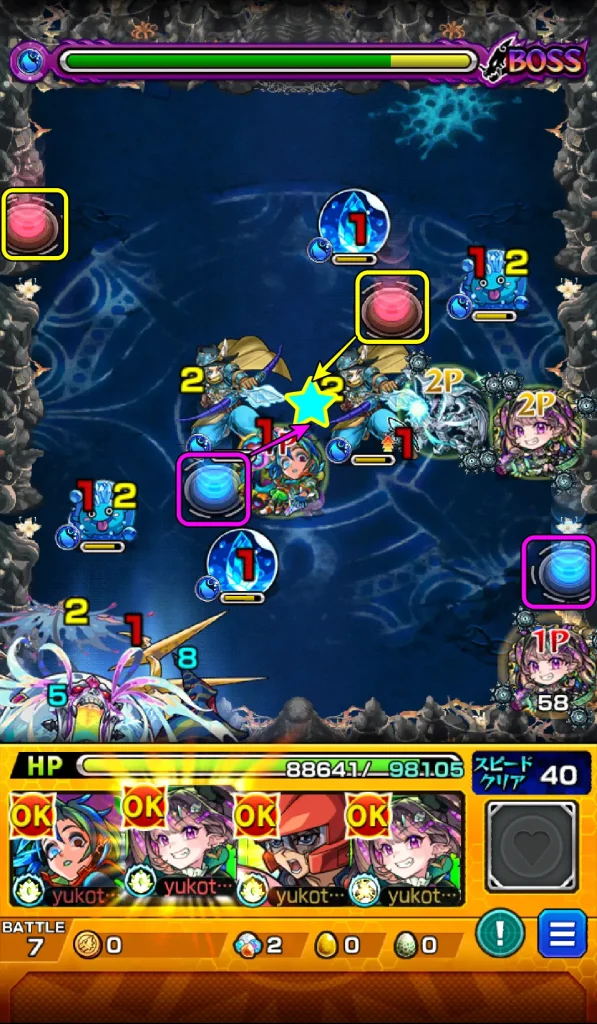 なので、無理に狙うより、味方に多く触れながらボスを直殴りで攻撃した方がダメージを出しやすいよ