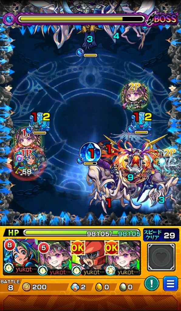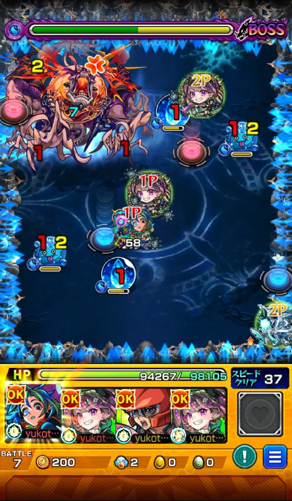 ただ、ボスの左上の攻撃はクロスレーザーで、1体約1万4000ダメージと痛い。