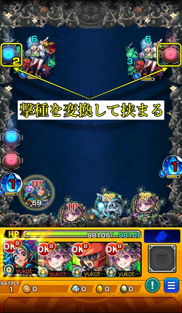 常に多くの味方に触れて、撃種を変換することを意識しよう。