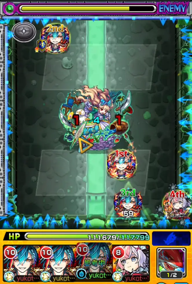 だから、確実に弱点を1回殴ることを意識しつつ、その流れで友情も発動させていくと一気にHPを削れる。