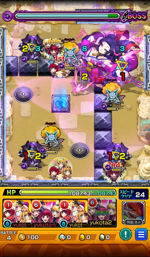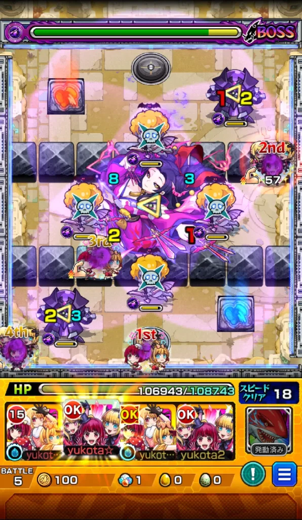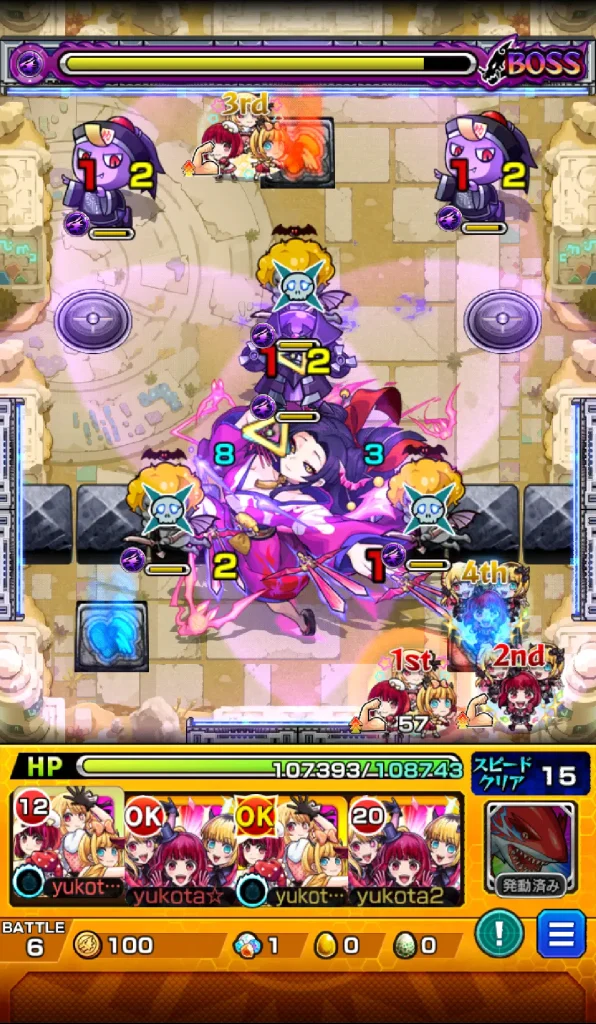 前のステージを攻撃力アップのバフを持ったまま突破できていれば、初手からしっかり火力を出しにいける。