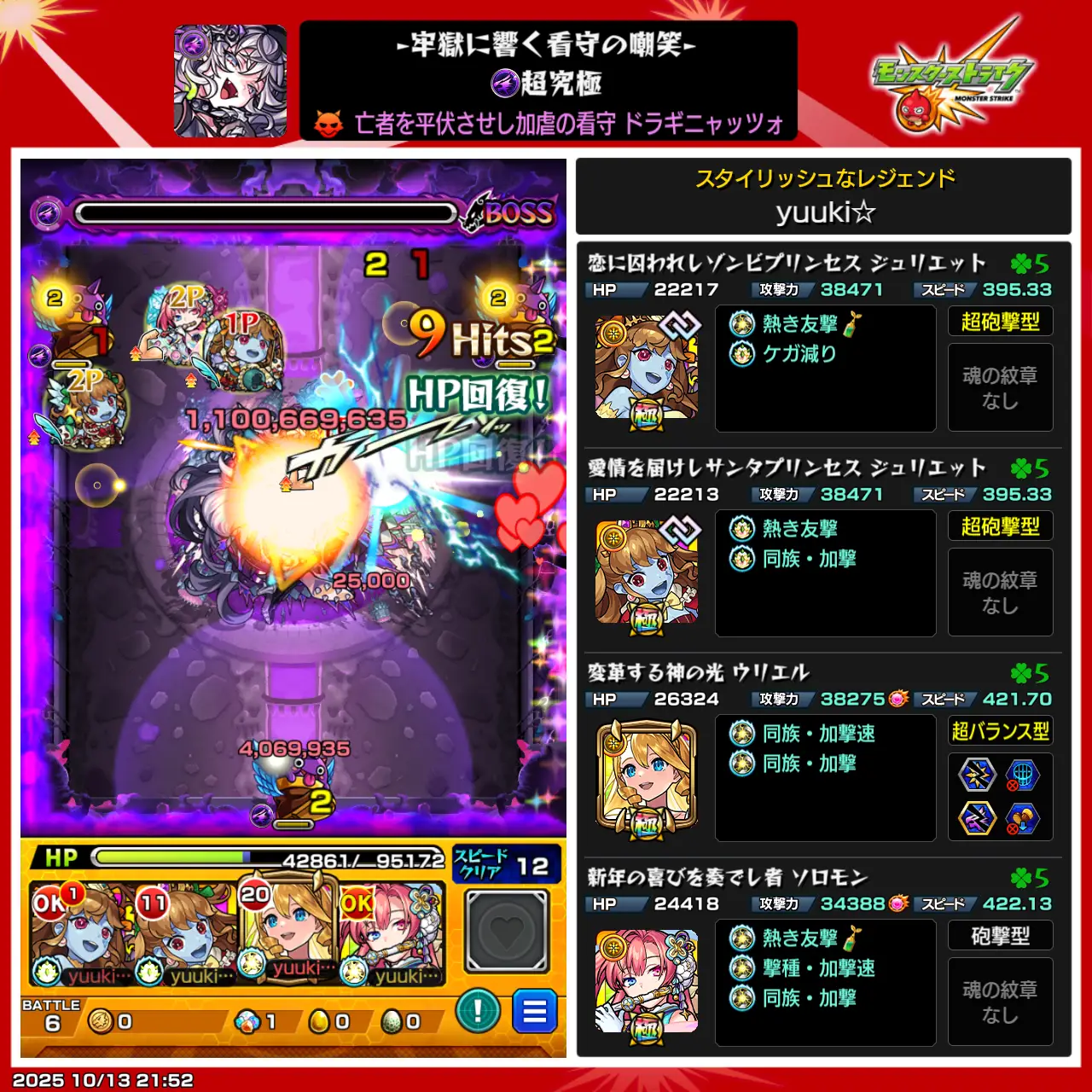 ドラギニャッツォ(超究極)は、初クリアで運極が手に入る超お得な期間限定クエストです。