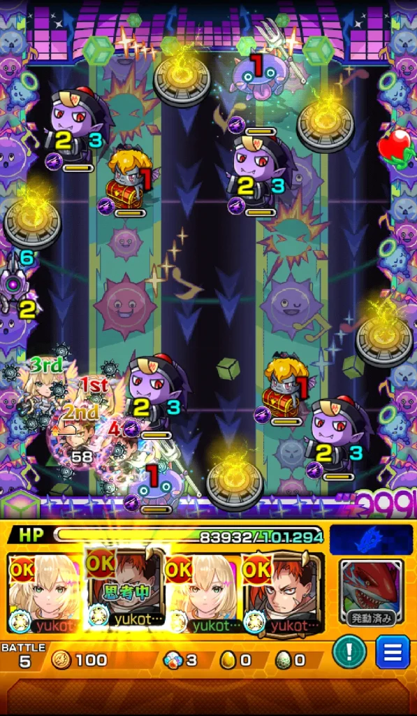 それとリズムの右から2番目の攻撃は、全体に約5万ダメージ入る全属性ホーミング。