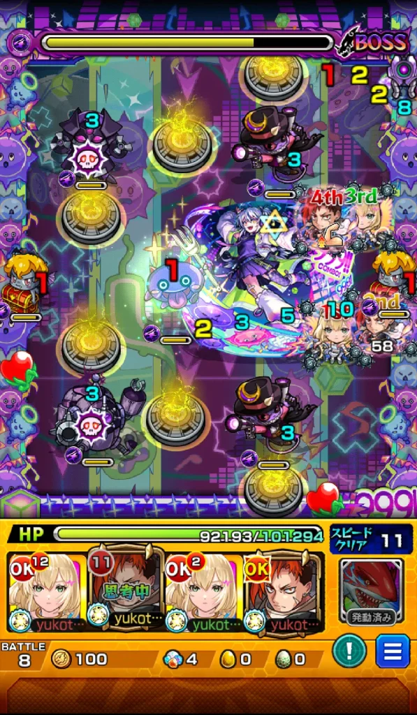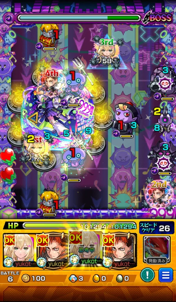 今回のリズム【EX】は、とにかく「魔導書のタイミング」と「防御力ダウンの維持」がすべてって感じだった。